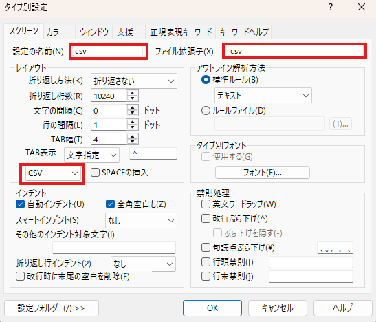 まずはサクラエディタでcsvファイルを利用するために必要な設定を紹介します。